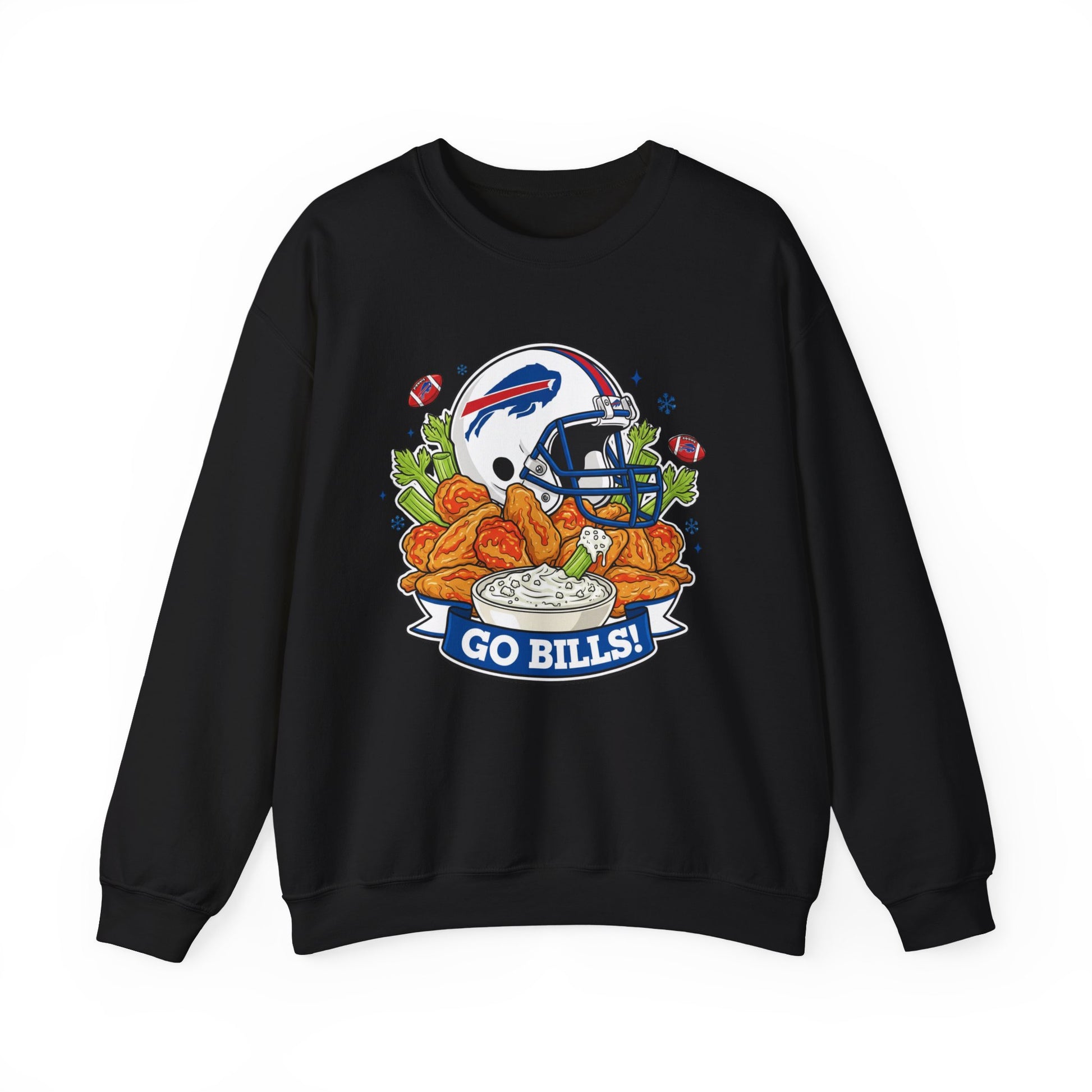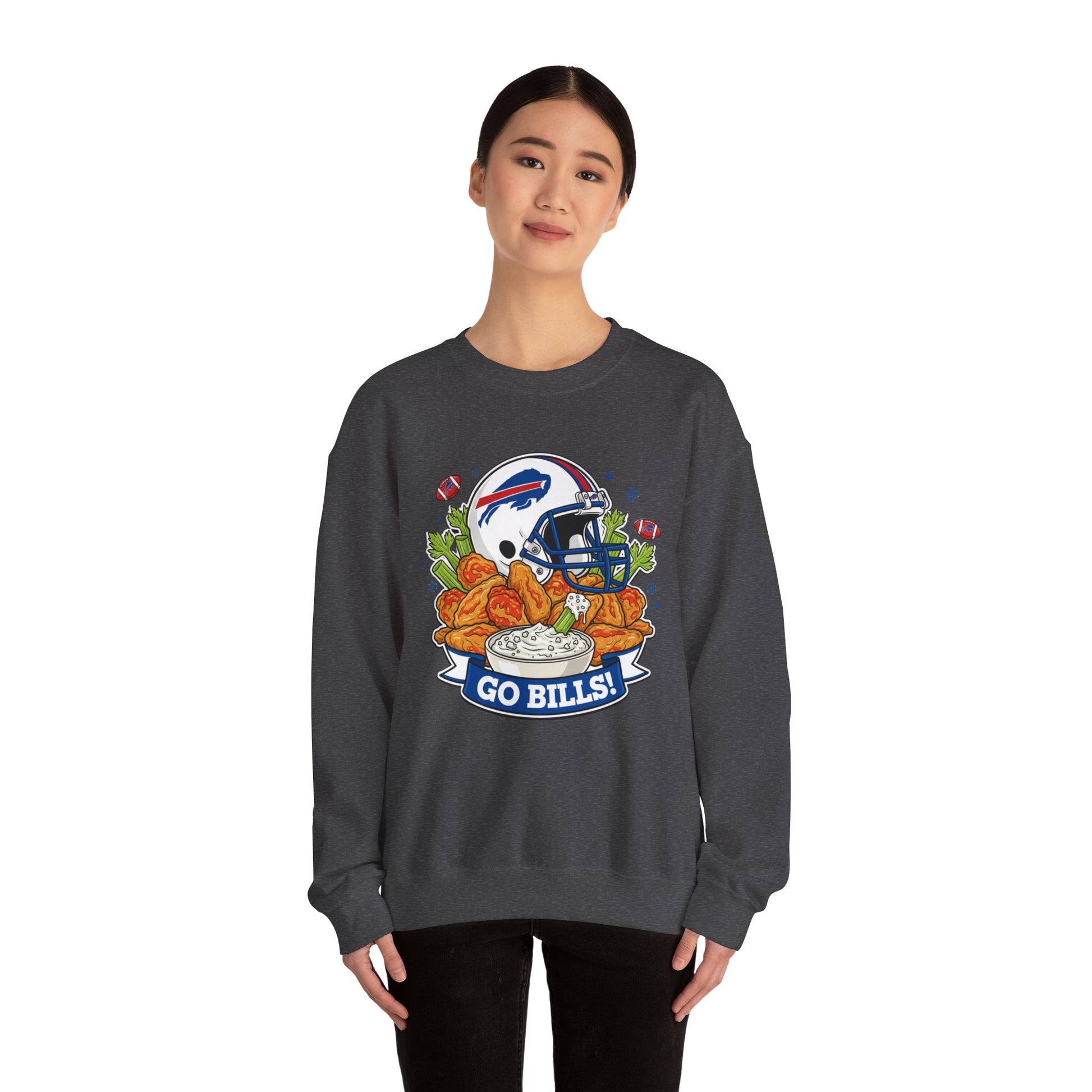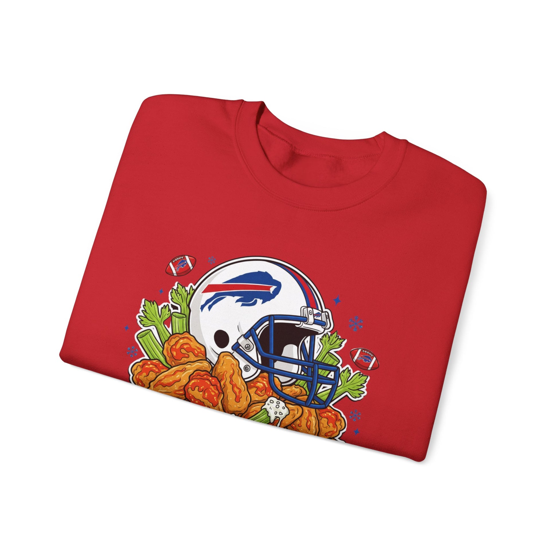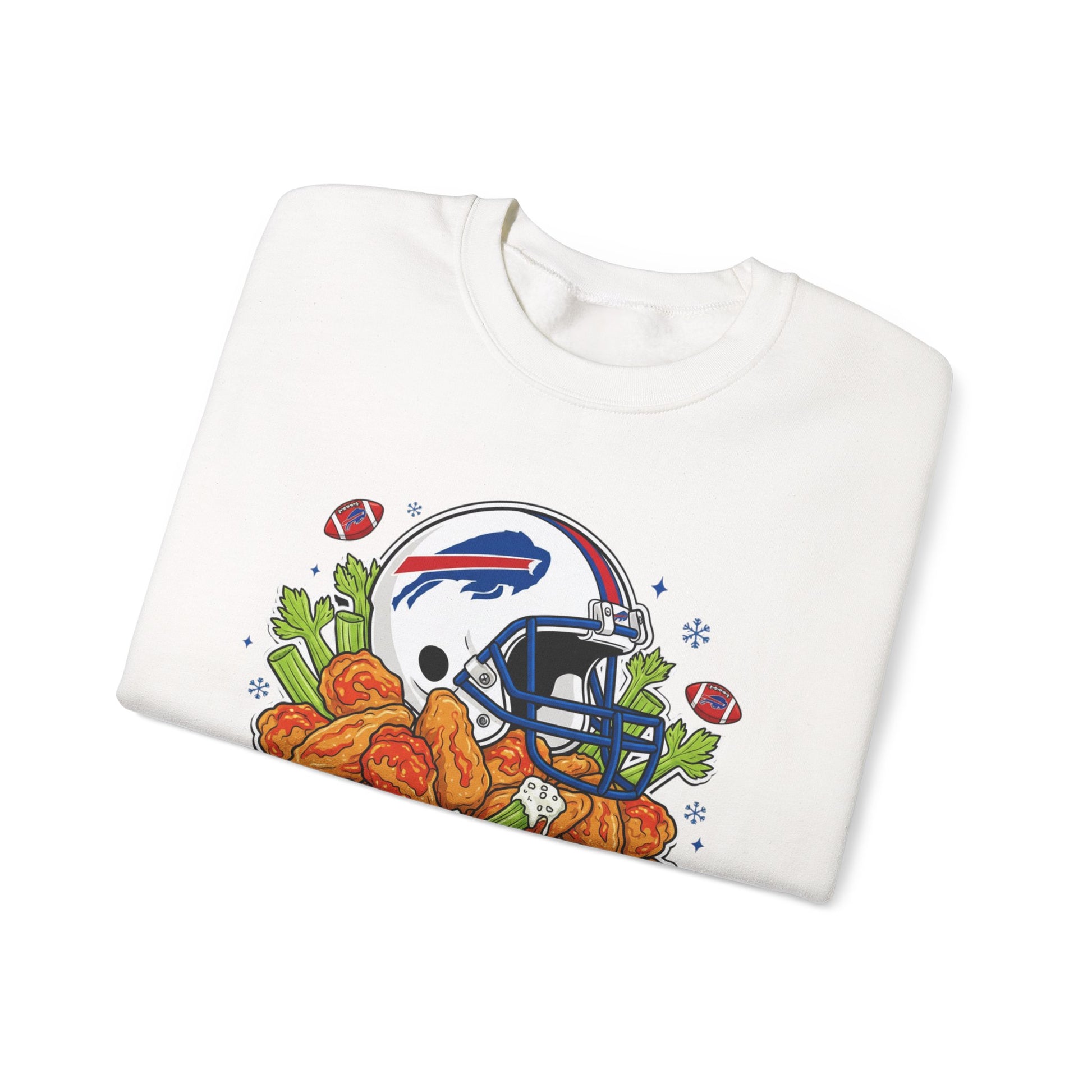 Buffalo Football Helmet & Wings Crewneck Sweatshirt — "Go Buffalo!" Fan Pullover