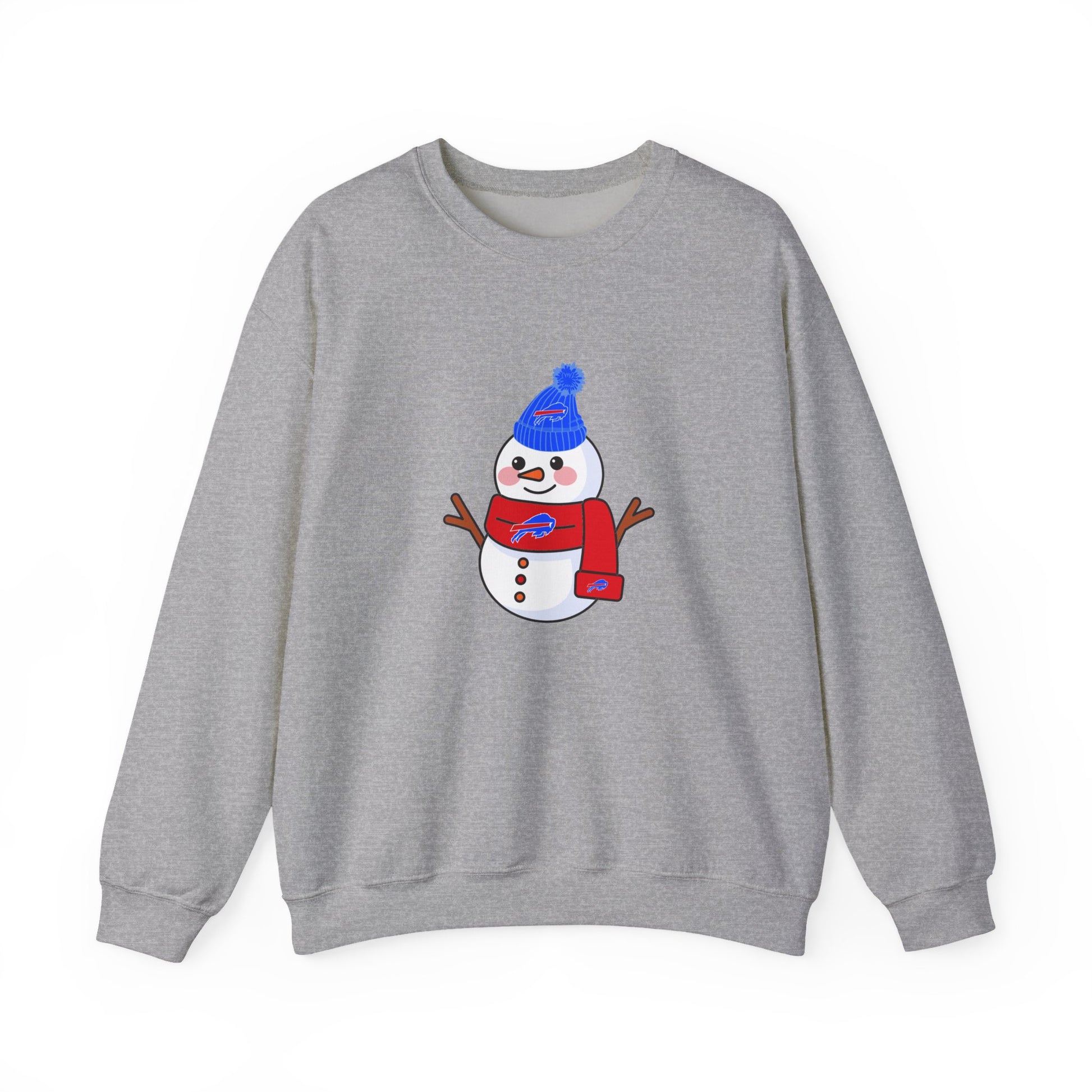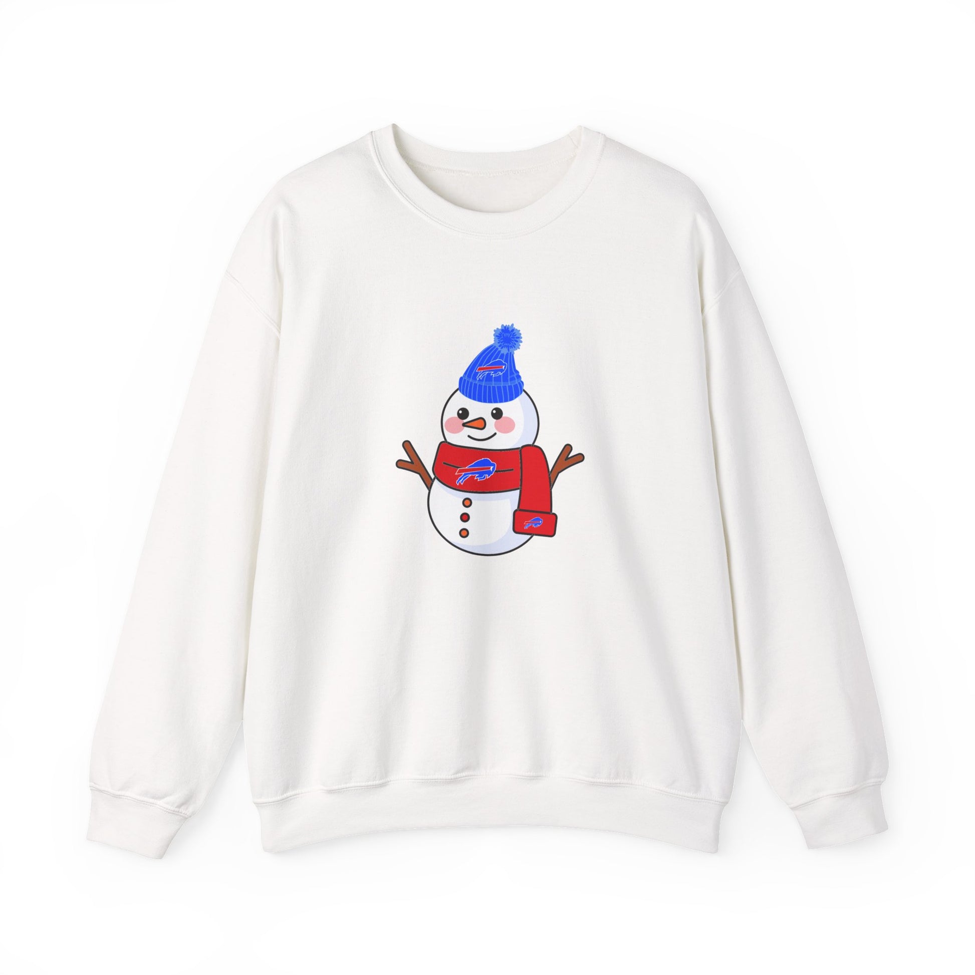 Buffalo Snowman Crewneck Sweatshirt – Cute Winter Snowman with Blue Beanie & Red Scarf